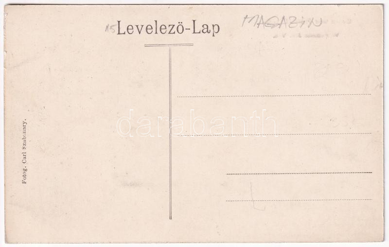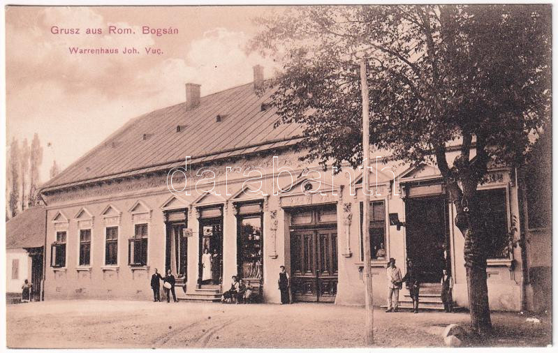 Leírás: Boksánbánya, Románbogsán, Németbogsán, Deutsch-Bogsan, Bocsa Montana; Warrenhaus Joh. Vuc. Fotog. Carl Szabonary / üzlet / shop