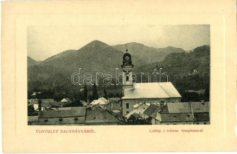 Nagybánya, Baia Mare; látkép a Református templommal. W. L. Bp. 6040. ... https://www.darabanth.com/hu/438-Gyorsarveres/438.0/Kepeslapok/Erdely~2500006/Nagybanya-Baia-Mare-latkep-a-Reformatus-templommal-W-L-Bp-6040-Kiadja-Krizsanovszky-Lori~II2872395