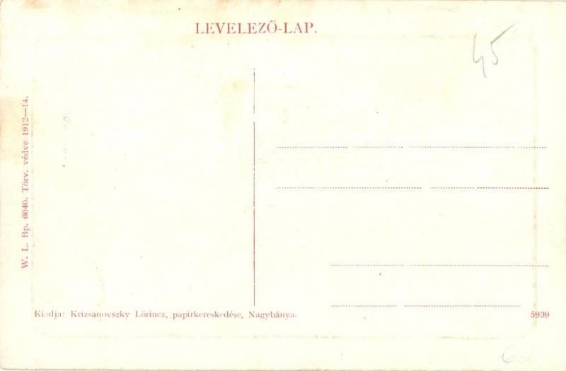 Leírás: Nagybánya, Baia Mare; látkép a Református templommal. W. L. Bp. 6040. Kiadja Krizsanovszky Lőrinc / general view with Calvinist church (vágott / cut)