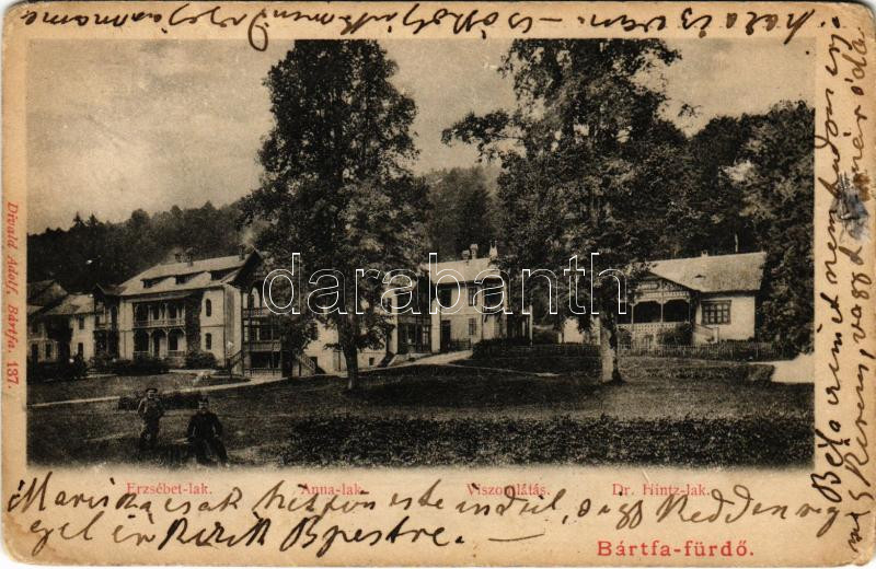 1902 Bártfa-fürdő, Bardejovské Kúpele, Bardiov, Bardejov; Erzsébet, An... https://www.darabanth.com/hu/438-Gyorsarveres/438.0/Kepeslapok/Felvidek~2500014/1902-Bartfa-furdo-Bardejovske-Kupele-Bardiov-Bardejov-Erzsebet-Anna-es-Dr-Hintz-lak-Vi~II2862339