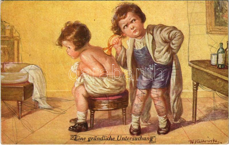 1927 Eine gründliche Untersuchung / Children art postcard s: W. Fialko... https://www.darabanth.com/hu/438-Gyorsarveres/438.0/Kepeslapok/Gyerek~2500049/1927-Eine-grundliche-Untersuchung-Children-art-postcard-s-W-Fialkowska-EK~II2858449