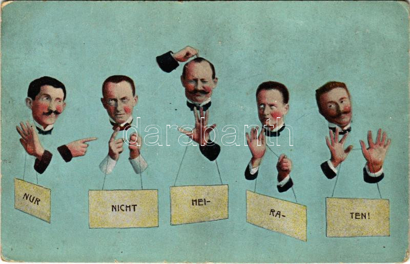 Nur nicht heiraten! / Még nem házas. Humoros lap / Not yet married, hu... https://www.darabanth.com/hu/438-Gyorsarveres/438.0/Kepeslapok/Humor~2500058/Nur-nicht-heiraten-Meg-nem-hazas-Humoros-lap-Not-yet-married-humour-BKWI-899-6-EK~II2862458