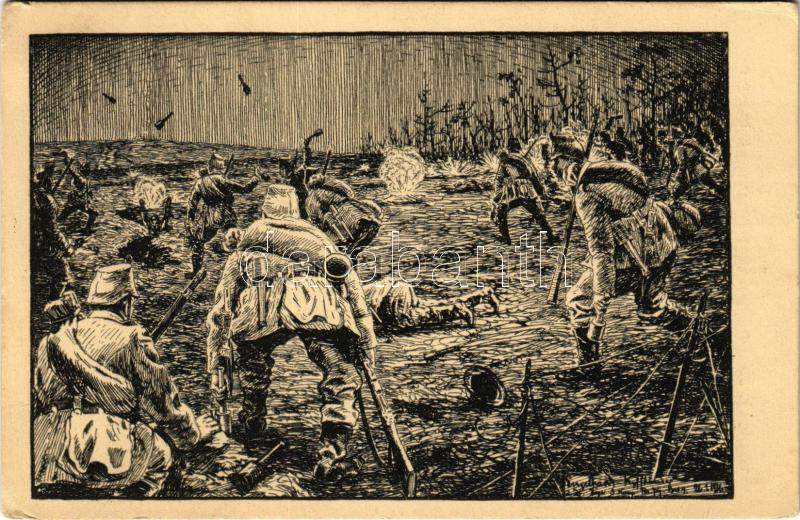 Leírás: 1917 Das Res. Jäger Batl. 4 am 10. Nov. 1915. Feldpostkarte / WWI K.u.k. military art (EK)