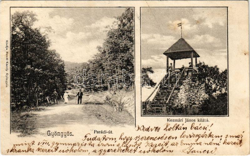 1906 Gyöngyös, Parádi út, Kozmári János kilátó. Bendl Károly kiadása (... https://www.darabanth.com/hu/438-Gyorsarveres/438.0/Kepeslapok/Magyarorszag~2500005/1906-Gyongyos-Paradi-ut-Kozmari-Janos-kilato-Bendl-Karoly-kiadasa-Rb~II2863558