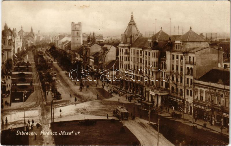 1934 Debrecen, Ferenc József út, villamos, Magyar Ruhaipar, Frank Rezs... https://www.darabanth.com/hu/438-Gyorsarveres/438.0/Kepeslapok/Magyarorszag~2500005/1934-Debrecen-Ferenc-Jozsef-ut-villamos-Magyar-Ruhaipar-Frank-Rezso-uzlete-fl~II2859844