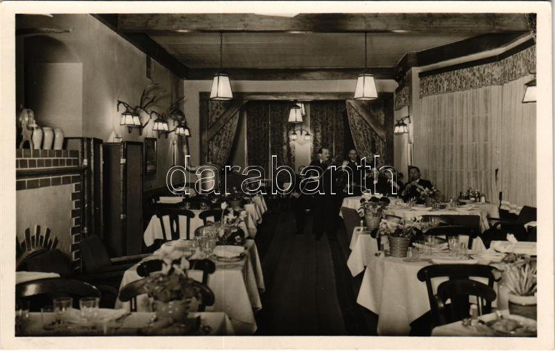 Leírás: Budapest XII. Kis Royal Étterem, cigány muzsikusok, belső. Márvány utca 19.