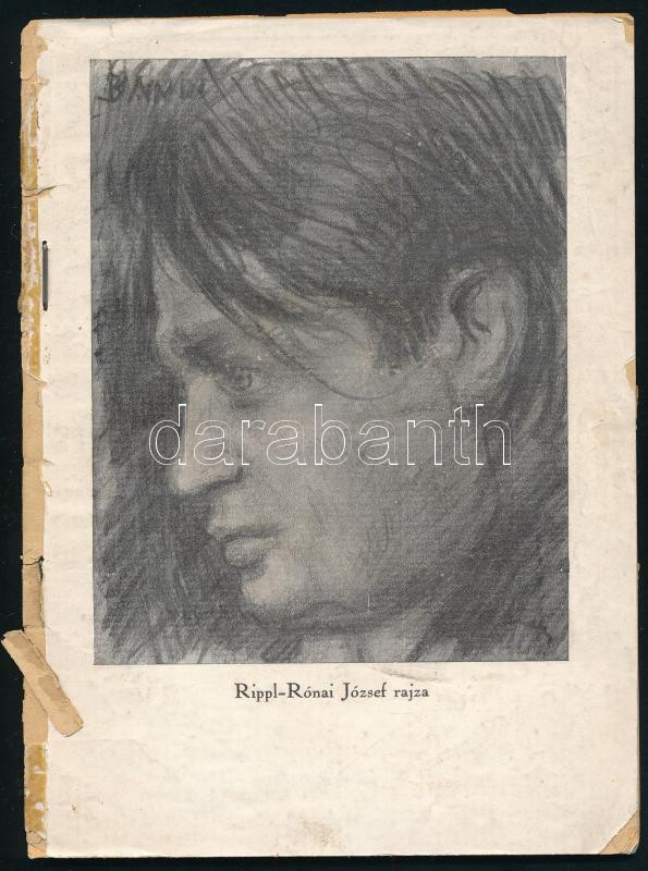 Ady Almanach. Bp., 1924, Amicus,(Globus-ny.), 46+2 p. + 3 t. (Rippl-Rónai József Ady portréi.) A kötetben Juhász Gyula, Ady Lajos, Rippl-Rónai József, Földessy Gyula és Dutka Ákos Adyról szóló írásai találhatók, valamint az Amicus kiadó könyvjegyzéke, gazdagon illusztrálva. kiadói papírkötés, hiányzó borítóval. Szakadozott állapotban.