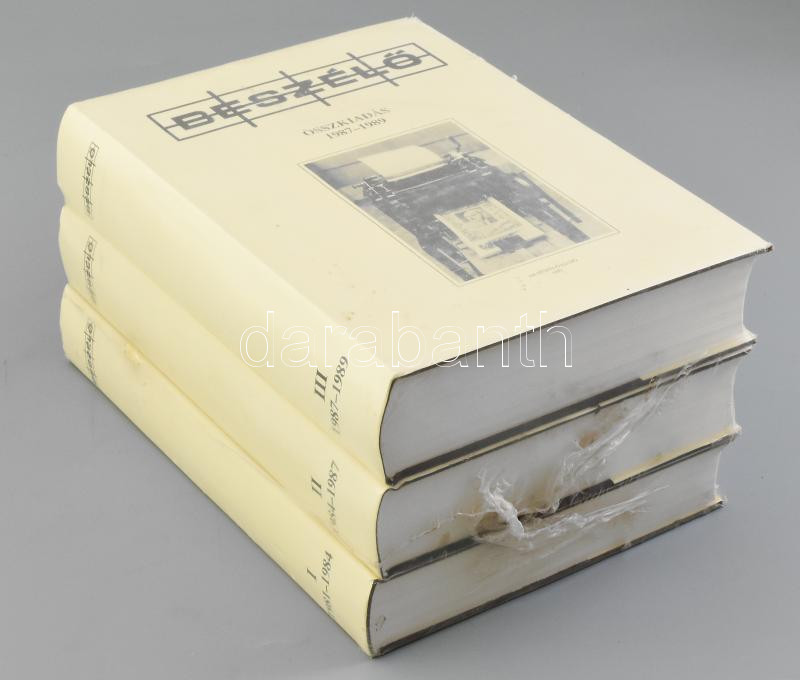 Leírás: Beszélő összkiadás I-III. I.: 1981-1984 - II.: 1984-1987 - III.: 1987-1989. AB Beszélő kiadó, 1992. Egészvászon kötés, papír védőborítóval, fóliázva, új, bontatlan állapotban
