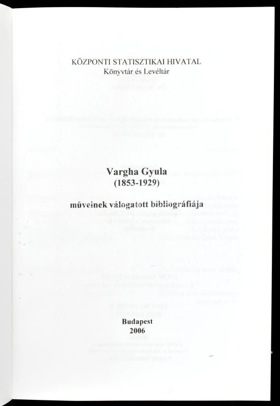 Varga Gyula (1853-1929) műveinek válogatott bibliográfiája. Nagy Magyar Statisztikusok 19. Bp., 2006.,KSH. Kiadó papírkötés;