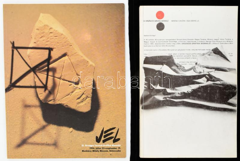 Leírás: 2 db grafikai biennálé katalógus: 1985 Miskolc, 13. országos grafikai biennálé + 1994. Jel IX. Országos Tervező Grafikai Biennálé