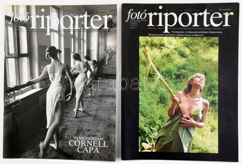 2007-2008 Fotóriporter, a magyar fotós újságírók negyedévenként megjelenő folyóirata, 2007/1. és 2008/1. számok. Gazdag képanyaggal illusztrálva, magyar és angol nyelven. Tűzött papírkötés, kissé koszos borítóval.