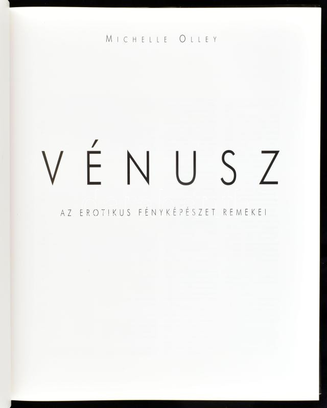 Michelle Olley: Vénusz. Az erotikus fényképészet remekei. FordÃtotta Buda Júlia. Bp., 2002, Glória. Gazdag képanyaggal illusztrált. Kiadói kartonált papÃrkötés, kiadói papÃr védÅ‘borÃtóban.