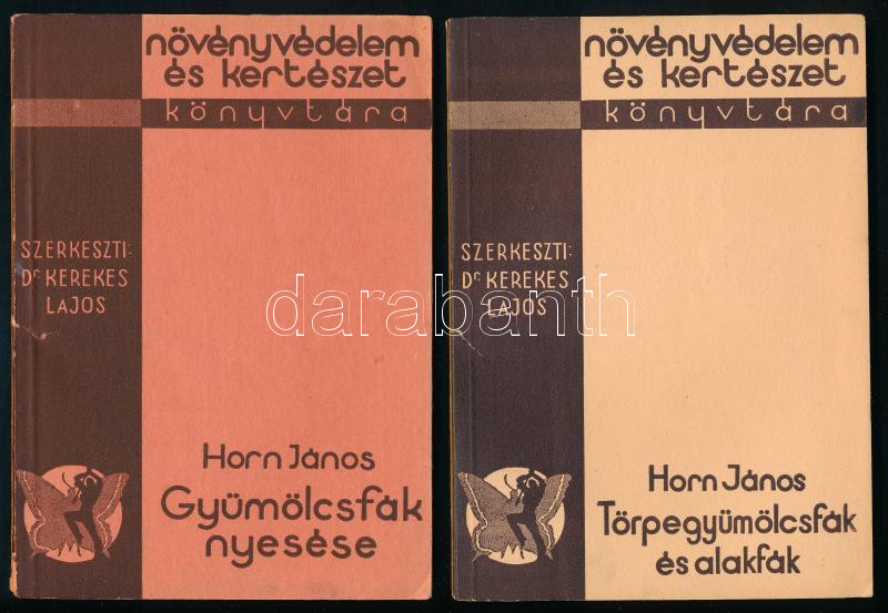 Leírás: Horn János: Gyümölcsfák nyesése.; Törpegyümöcsfák és alakfák. Növényvédelem és Kertészet Könyvtára. Bp., 1934-1935., Növényvédelem és Kertészet. Kiadói papírkötés