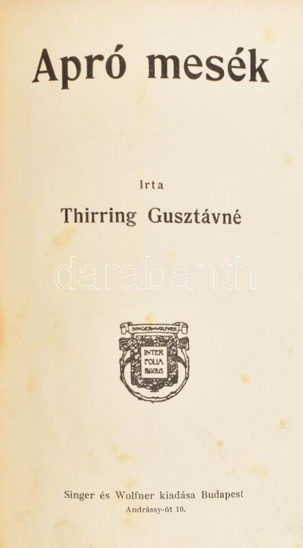 Thirring Gusztávné: Apró mesék- Filléres könyvtár. Bp., é.n. Singer és... https://www.darabanth.com/hu/438-Gyorsarveres/438.0/Konyvek/Konyvek-Mesekonyvek-ifjusagi-irodalom~1000026/Thirring-Gusztavne-Apro-mesek-Filleres-konyvtar-Bp-en-Singer-es-Wolfner-Kiadoi-fe~II2863945