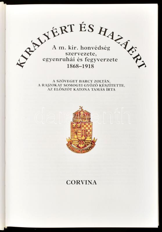 Barczy Zoltán-Somogyi Győző: Királyért és hazáért. A m. kir. honvédség szervezete, egyenruhái és fegyverzete. 1868-1918. A szöveget Barcy Zoltán, a rajzokat Somogyi Győző készítette. Katona Tamás előszavával. Bp.,1990., Corvina. Gazdag képanyaggal illusztrált. Kiadói kartonált papírkötés.