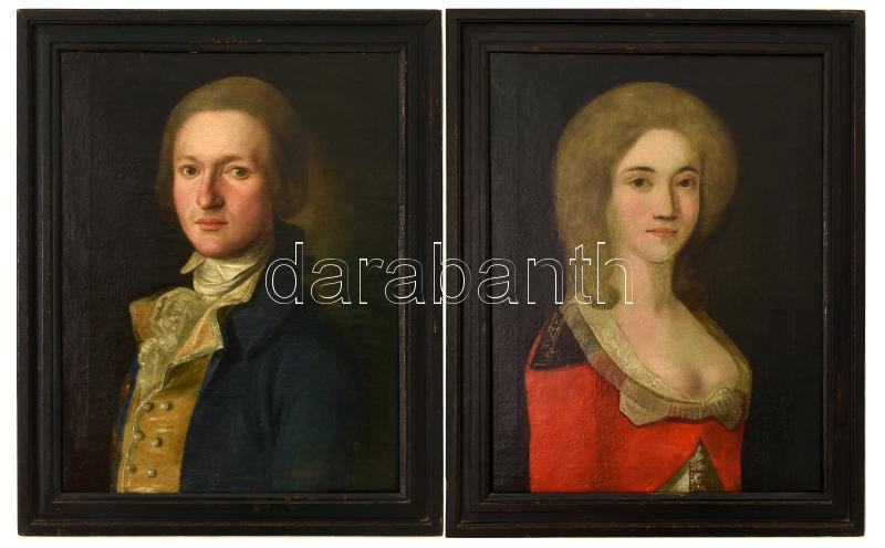 Ismeretlen festő, jelzés nélkül: Nemesi pár portréja. 2 db festmény. Olaj, vászon, restaurált, korabeli fekete fakeretben, 1780 körül, 55x42cm /A tétel a Gödöllői Királyi Kastélyban tekinthető meg. A megtekintéshez időpontot kell egyeztetni ezen a telefonon a múzeummal,06 30-590-3371. Amennyiben elnyeri a tételt árverésünkön, akkor irodánkban való fizetés után személyesen a kastélyban vehető át. A terméket nem postázzuk.
