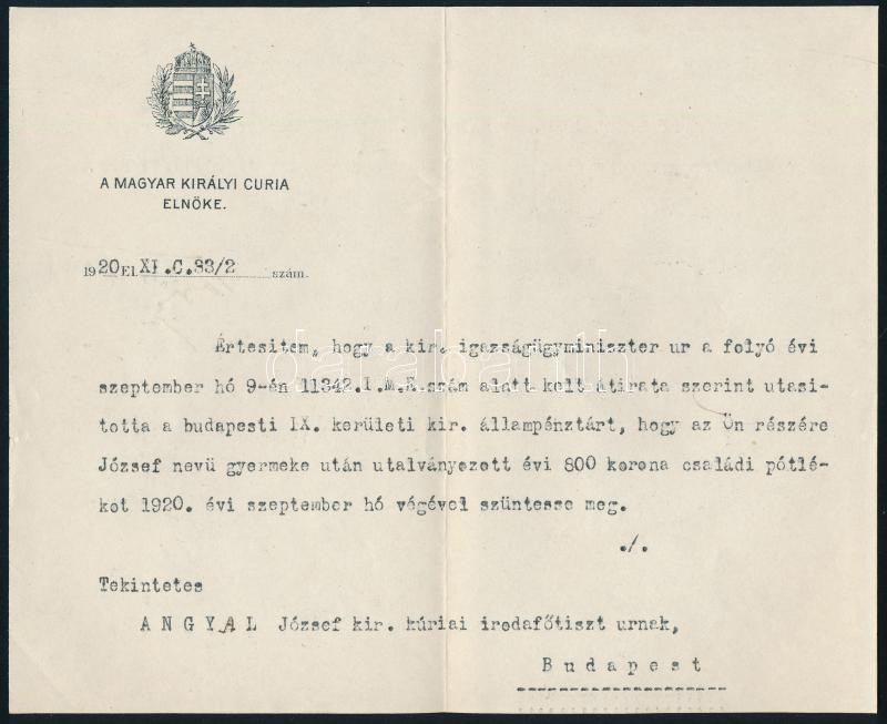 1920 Tőry Gusztáv (1857-1925) curiai elnök, igazságügy-miniszter aláír... https://www.darabanth.com/hu/438-Gyorsarveres/438.0/Mutargy-papirregiseg-egyeb/Alairas~500022/1920-Tory-Gusztav-1857-1925-curiai-elnok-igazsagugy-miniszter-alairasa-hivatalos-levelen~II2865921