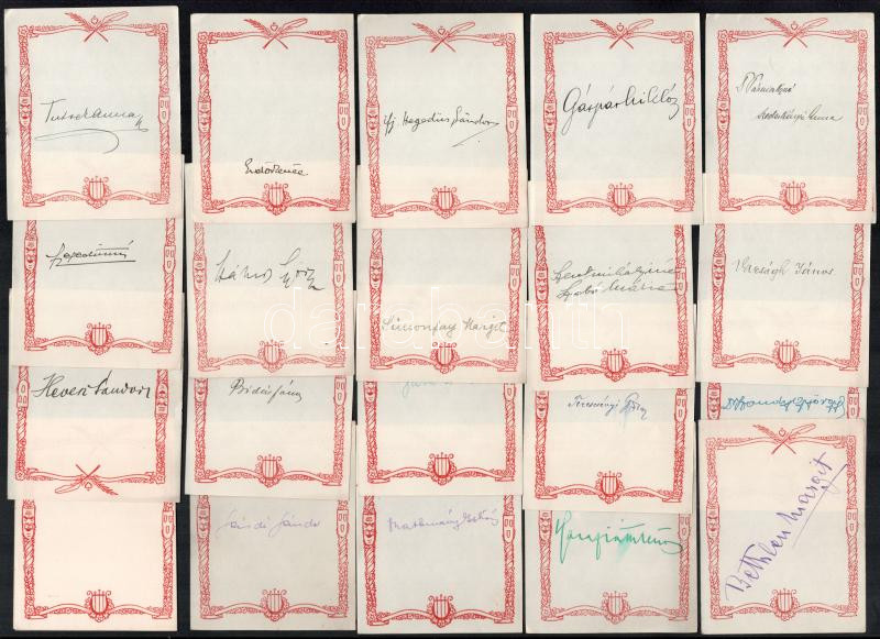 Leírás: Autogram gyűjtemény az 1930-as évekből 19 db aláírás autogram kártyákon Tutsek Anna, Erdős Renée, ifj Hegedűs Sándor, Gáspár Miklós, stb + üres kártyák