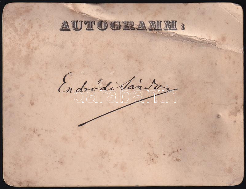 Leírás: Endrődi Sándor költő autogramja autogram kártyán. Foltos.
