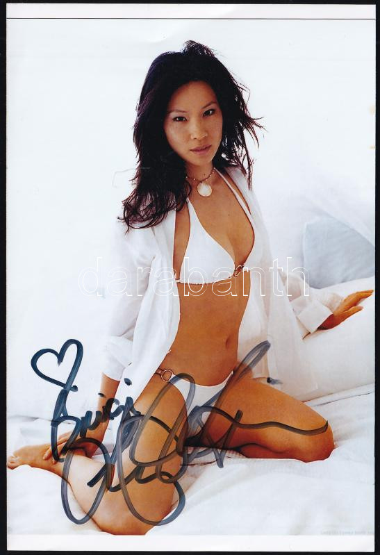 Leírás: Lucy Alexis Liu (1968-) kínai származású amerikai színésznő aláírása fotón