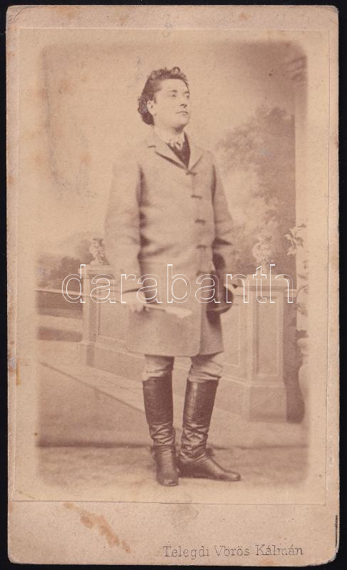 Leírás: cca 1870 Vári Kálmán portréja, keményhátú fotó Telegdi Vörös Kálmán műterméből, foltos, 10,5×6,5 cm