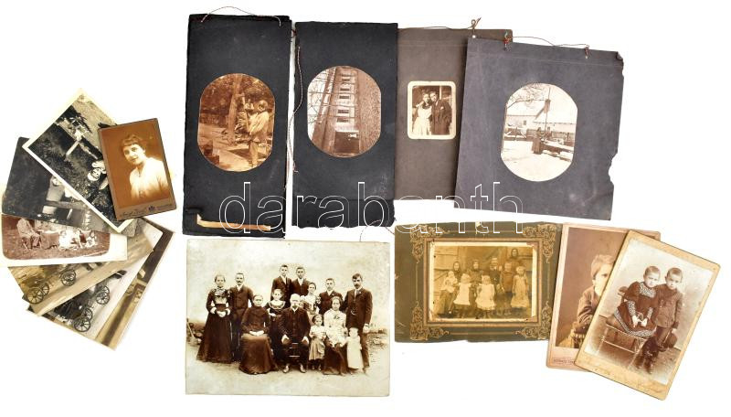 cca 1900-1943 Vegyes fotó tétel, 22 db, közte portré és helyszínfotók, fotók kartonon, keményhátú fotók és fotólapok vegyesen, változó állapotban, közte foltos, és körbevágott is, 17x23 cm és 6,5x5,5 cm