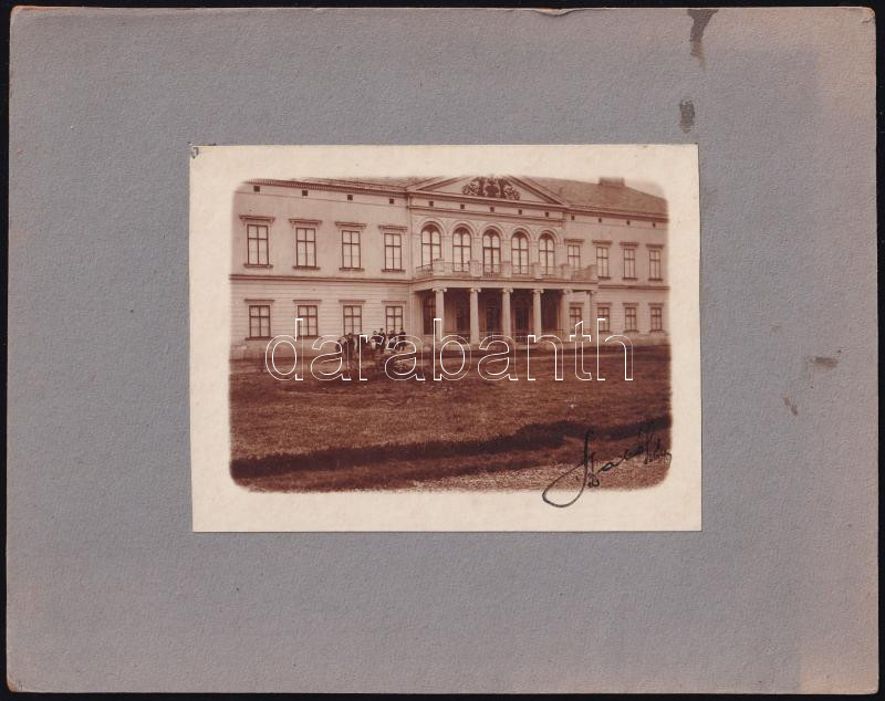 Leírás: cca 1910 Mocsonok, a nyitrai püspök nyári kastélya, kartonra ragasztott fotó, 9×12 cm
