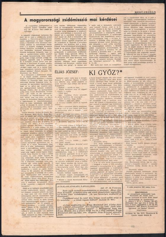 Leírás: 1947 Megújhodás - Zsidóknak a keresztyénségről, keresztyéneknek a zsidóságról. II. évf. 5. sz., 1947. máj. 15. Kissé foltos, 4 p.