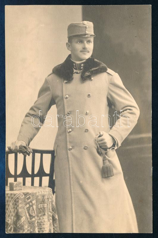 Leírás: 1914 Debrecen, Dusvezky Pál Endre katonatiszt fényképe, hátoldalon feliratozott fotó, 13,5×8,5 cm