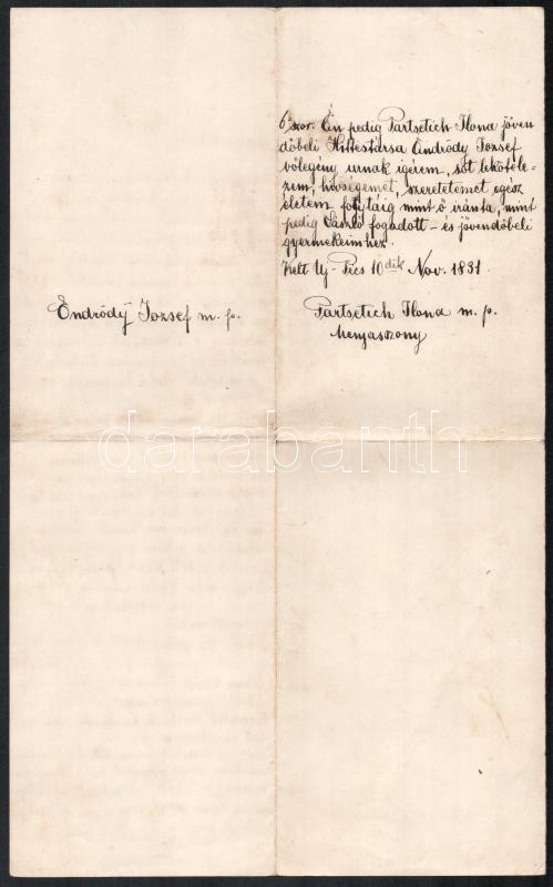 1831 Pécs, házasságbeli szerződés, https://www.darabanth.com/hu/438-Gyorsarveres/438.0/Mutargy-papirregiseg-egyeb/Okmanyok~500020/1831-Pecs-hazassagbeli-szerzodes-~II2869416