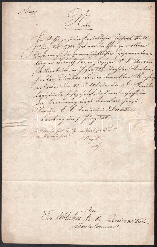 1832 Lemberg, egyetemi konzisztóriumi értesítés, német nyelven https://www.darabanth.com/hu/438-Gyorsarveres/438.0/Mutargy-papirregiseg-egyeb/Okmanyok~500020/1832-Lemberg-egyetemi-konzisztoriumi-ertesites-nemet-nyelven~II2870544