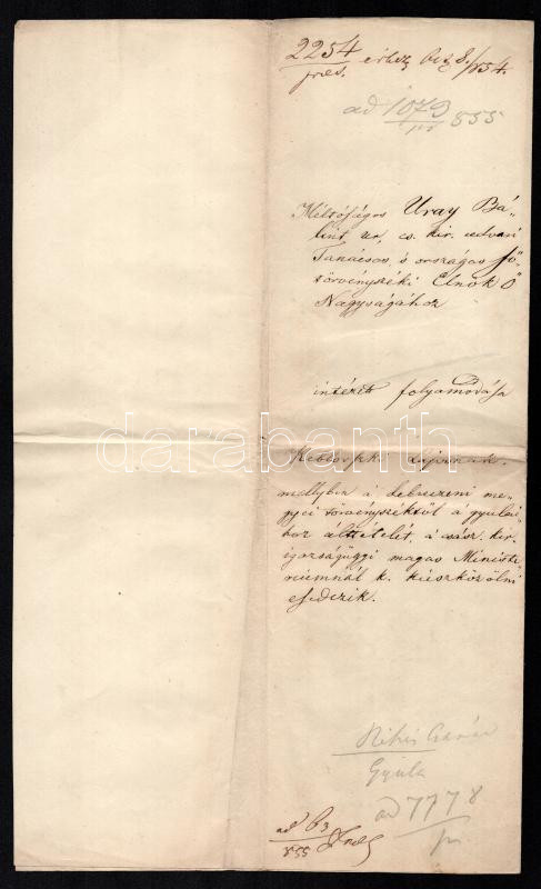 1855 Folyamodvány Uray Bálint cs. és kir. tanácsos országos főtörvénys... https://www.darabanth.com/hu/438-Gyorsarveres/438.0/Mutargy-papirregiseg-egyeb/Okmanyok~500020/1855-Folyamodvany-Uray-Balint-cs-es-kir-tanacsos-orszagos-fotorvenyszeki-elnokhoz~II2853647