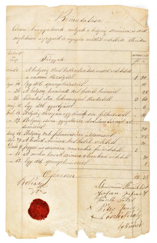 1862 Kimutatás, árjegyzék/nyugta nélkül vett tárgyakra, K.Szekcső, via... https://www.darabanth.com/hu/438-Gyorsarveres/438.0/Mutargy-papirregiseg-egyeb/Okmanyok~500020/1862-Kimutatas-arjegyzeknyugta-nelkul-vett-targyakra-KSzekcso-viaszpecsettel-szakadass~II2860763