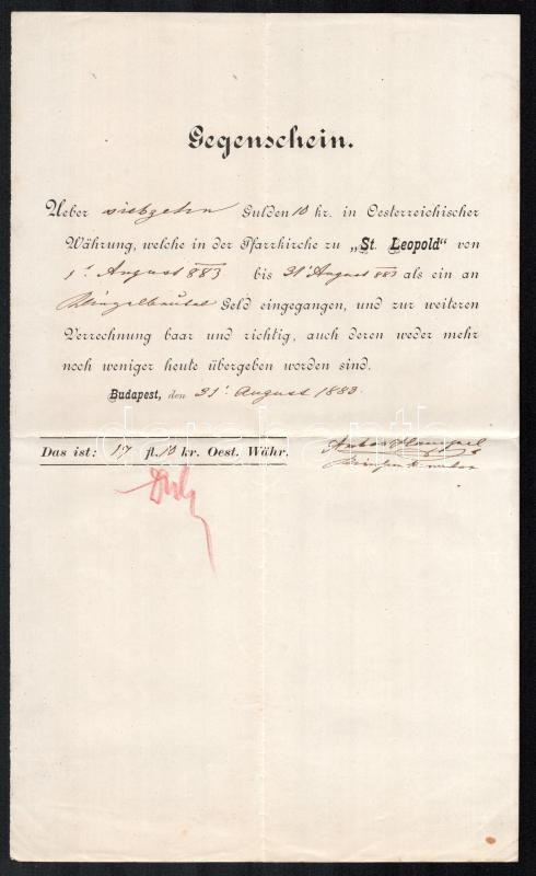 1889 Bp., "Pfarrkirche St. Leopold" nyugta https://www.darabanth.com/hu/438-Gyorsarveres/438.0/Mutargy-papirregiseg-egyeb/Okmanyok~500020/1889-Bp-Pfarrkirche-St-Leopold-nyugta~II2862643