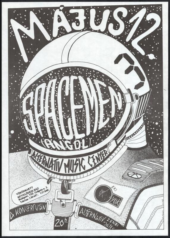 1990 A Spacemen 3 angol experimental / alternatív rock zenekar Fekete Lyukbeli fellépésére készített eredeti plakát, Bolyó grafikája, szép állapotban, 41×29 cm