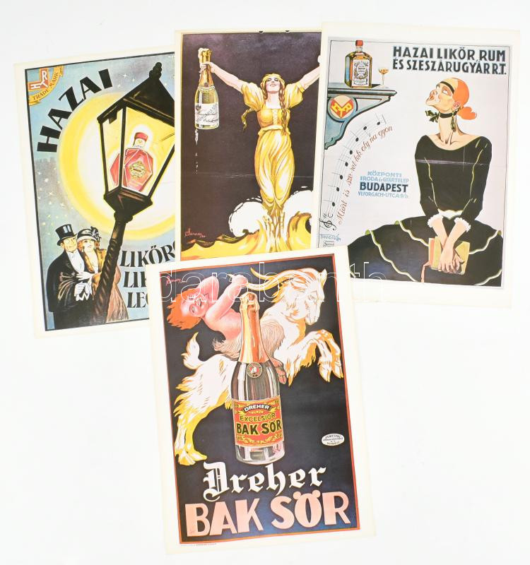 Leírás: 4 db régi magyar reklám plakát modern reprintje 24x34 cm