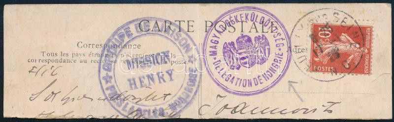 Leírás: 1920 Trianon Magyar Békeküldöttség és Mission Henry pecsétek képeslap kivágáson