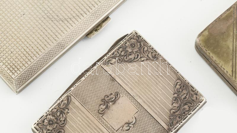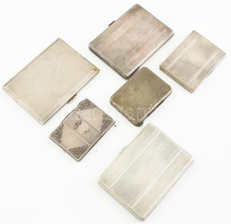 Leírás: 6 db különféle ezüst (Ag) cigarettatárca. Jelzettek, össz. nettó: 577,9 g. Vegyes állapotban, 7x5,5 cm és 11x8 cm között.