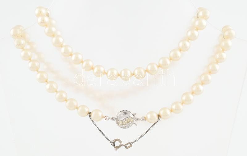 Leírás: Tenyésztett gyöngy nyaklánc ezüst kapoccsal (0,835) 35 cm 7 mm gyöngymérettel