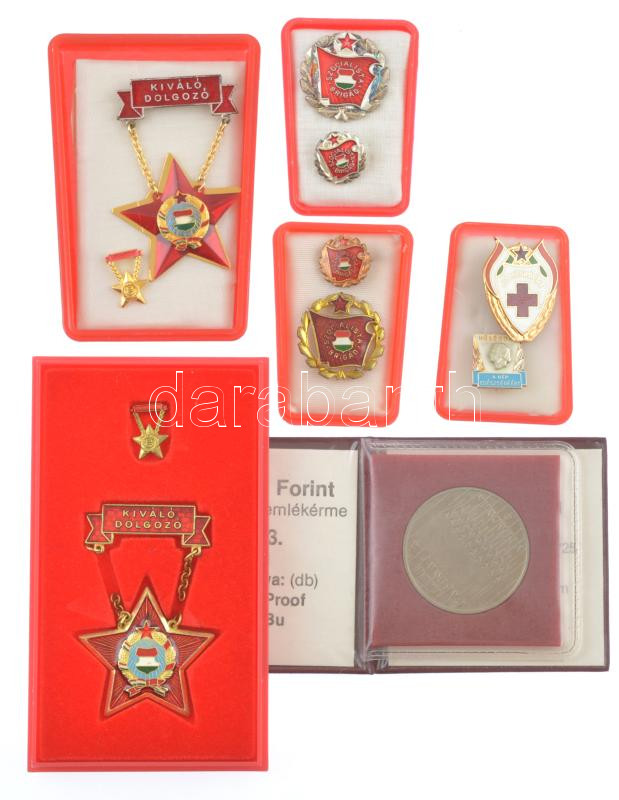1983. 100Ft Cu-Ni "FAO - Több gabonát a világnak" műbőr tokban, tanúsítvánnyal + 6db klf szocialista kitüntetés, közte "Kiváló dolgozó, Jó munkáért, Hűséggel a népegészségért, Szocialista Brigád" T:vegyes