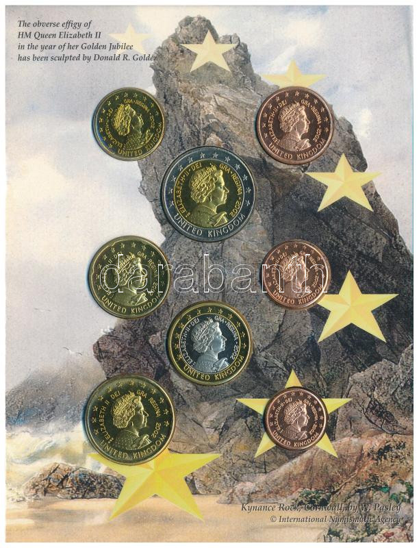 Great Britain 2002. 1 Cent - 2 Euro (8xdiff) trial strike coin set in cardboard case C:UNC