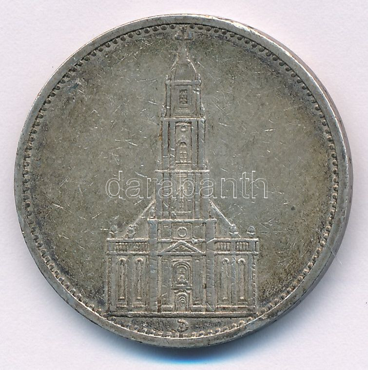 Leírás: Német Harmadik Birodalom 1935D 5M Ag "Garnisonkirche" T:XF,VF German Third Reich 1935D 5 Reichsmark Ag "Garnisonkirche" C:XF,VF