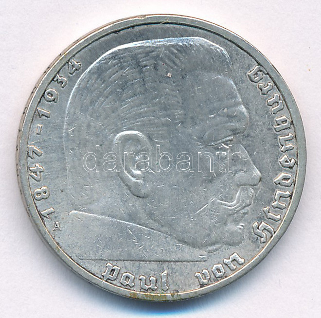 German Third Reich 1937A 2 Mark Ag "Hindenburg" C:XF,VF patina, small edge error