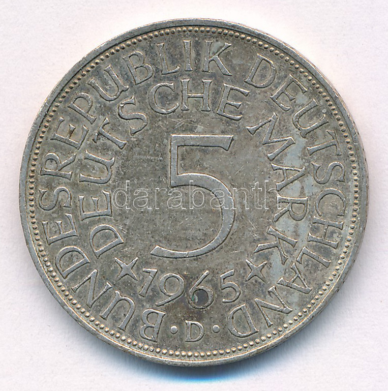 Német Szövetségi Köztársaság 1965D 5M Ag T:XF patina Federal Republic ... https://www.darabanth.com/hu/438-Gyorsarveres/438.0/Numizmatika/Kulfoldi-fem-es-ezustpenzek~1500014/Nemet-Szovetsegi-Koztarsasag-1965D-5M-Ag-TXF-patina-Federal-Republic-Germany-1965D-5-Mark-Ag-~II2861153