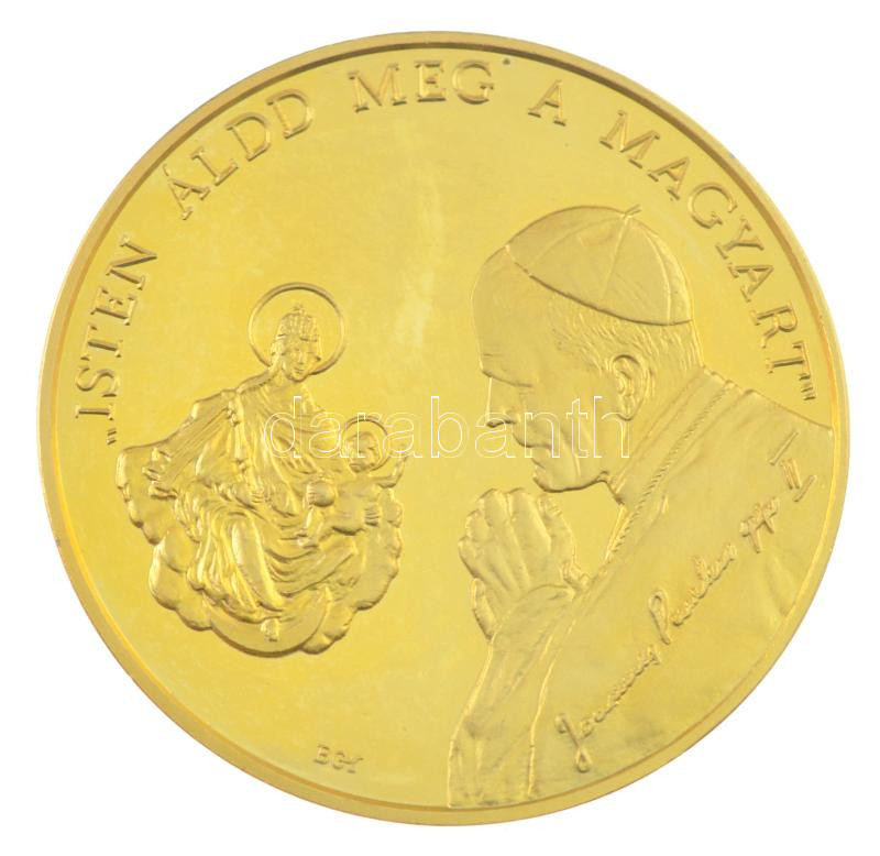Leírás: Bognár György (1944-) / Lebó Ferenc (1960-) 1991. "II. János Pál pápa látogatása - Debrecen" kétoldalas aranyozott fém emlékérem (42,5mm) T:PP fo.