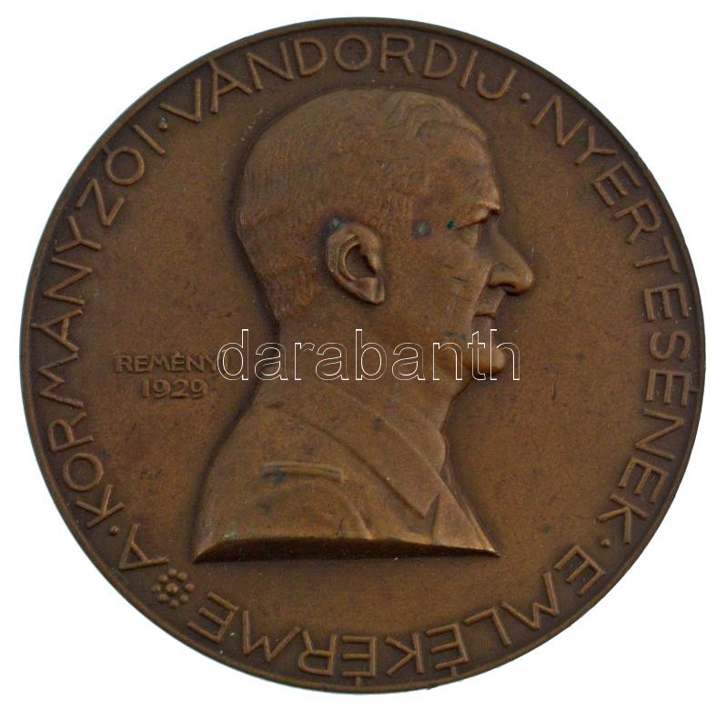 Reményi József (1887-1977) 1929. "A kormányzói vándordíj nyertesének emlékérme / Adományozta az Országos Magyar Dalos Szövetség - MDEOSZ" bronz érem dísztokban (59mm) T:AU,XF