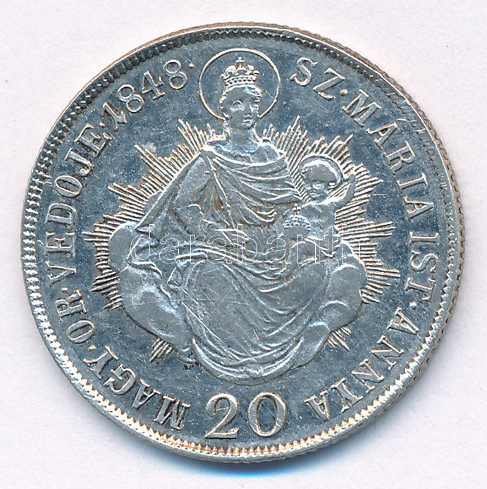 Hunga... https://www.darabanth.com/hu/438-Gyorsarveres/438.0/Numizmatika/Magyar-es-magyar-verdejelu-fem-es-ezustpenzek~1500008/1848KB-20kr-Ag-V-Ferdinand-TAU-kis-juszt-patina-Hungary-1848KB-20-Kreuzer-Ag-Ferdinand-V-C~II2855716