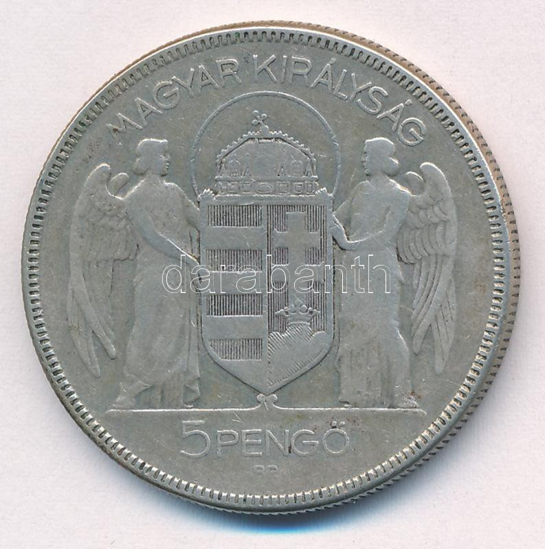 Leírás: 1930. 5P Ag "Horthy jobbra" T:F patina