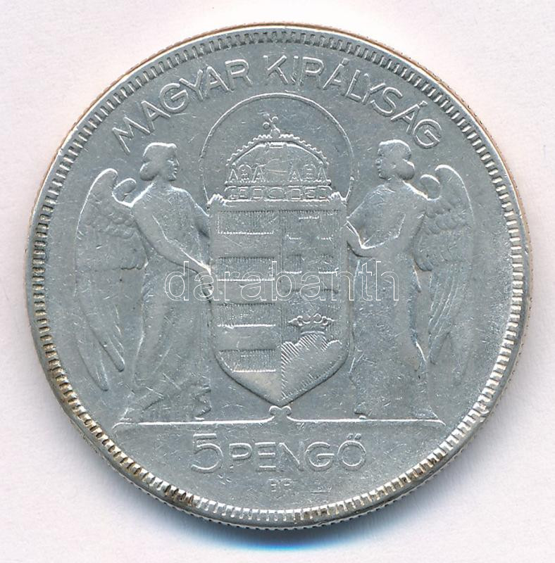 Leírás: 1930. 5P Ag "Horthy jobbra" T:F ph.