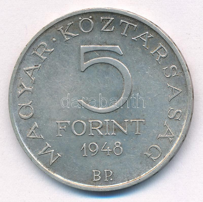 Leírás: 1948. 5Ft Ag "Petőfi" T:AU patina